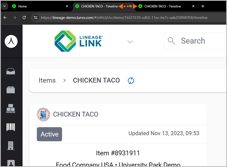Each item ID has records associated with key information, such as its orders (active/historical), timeline history, traceability details with reference numbers, dimensions, and more. For additional questions regarding item setup, contact Customer Service at the appropriate Lineage facility.